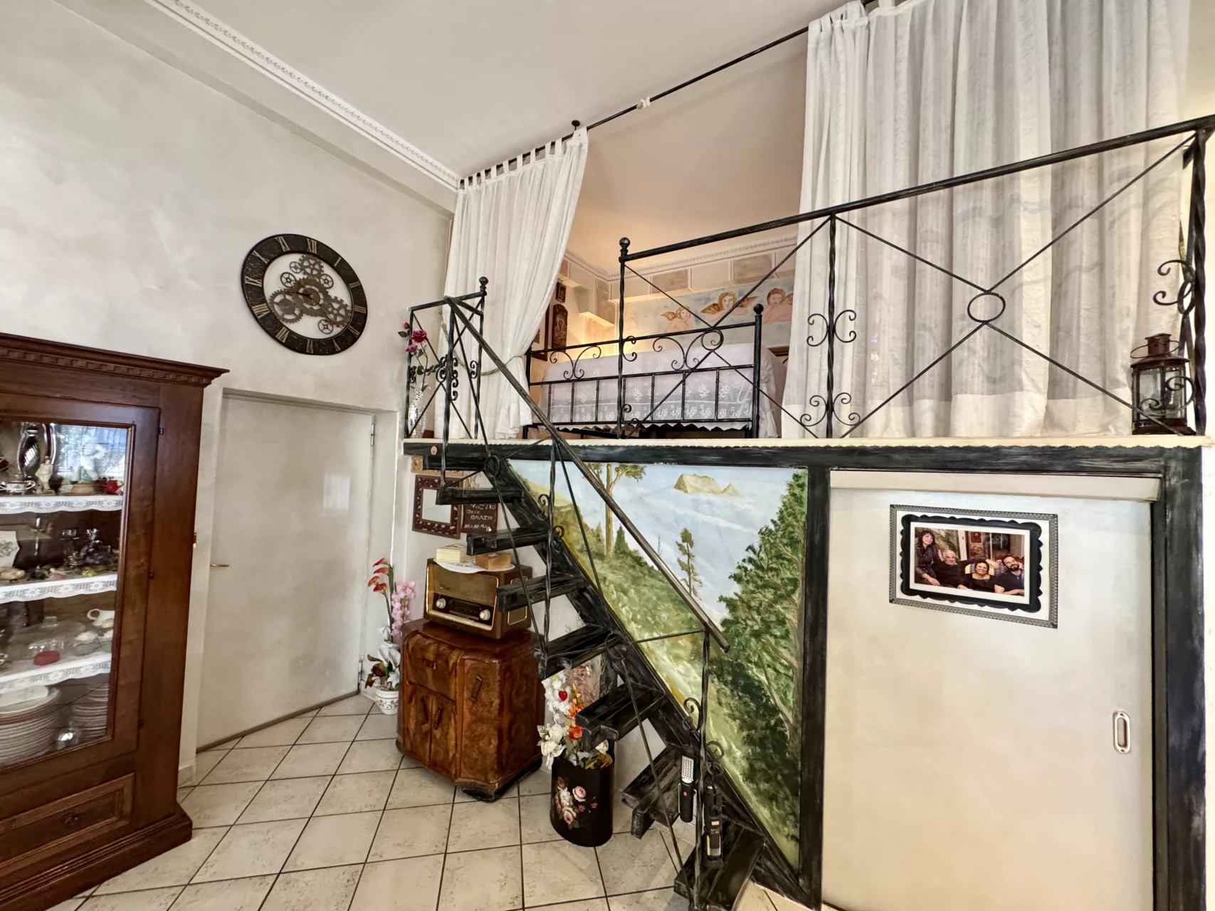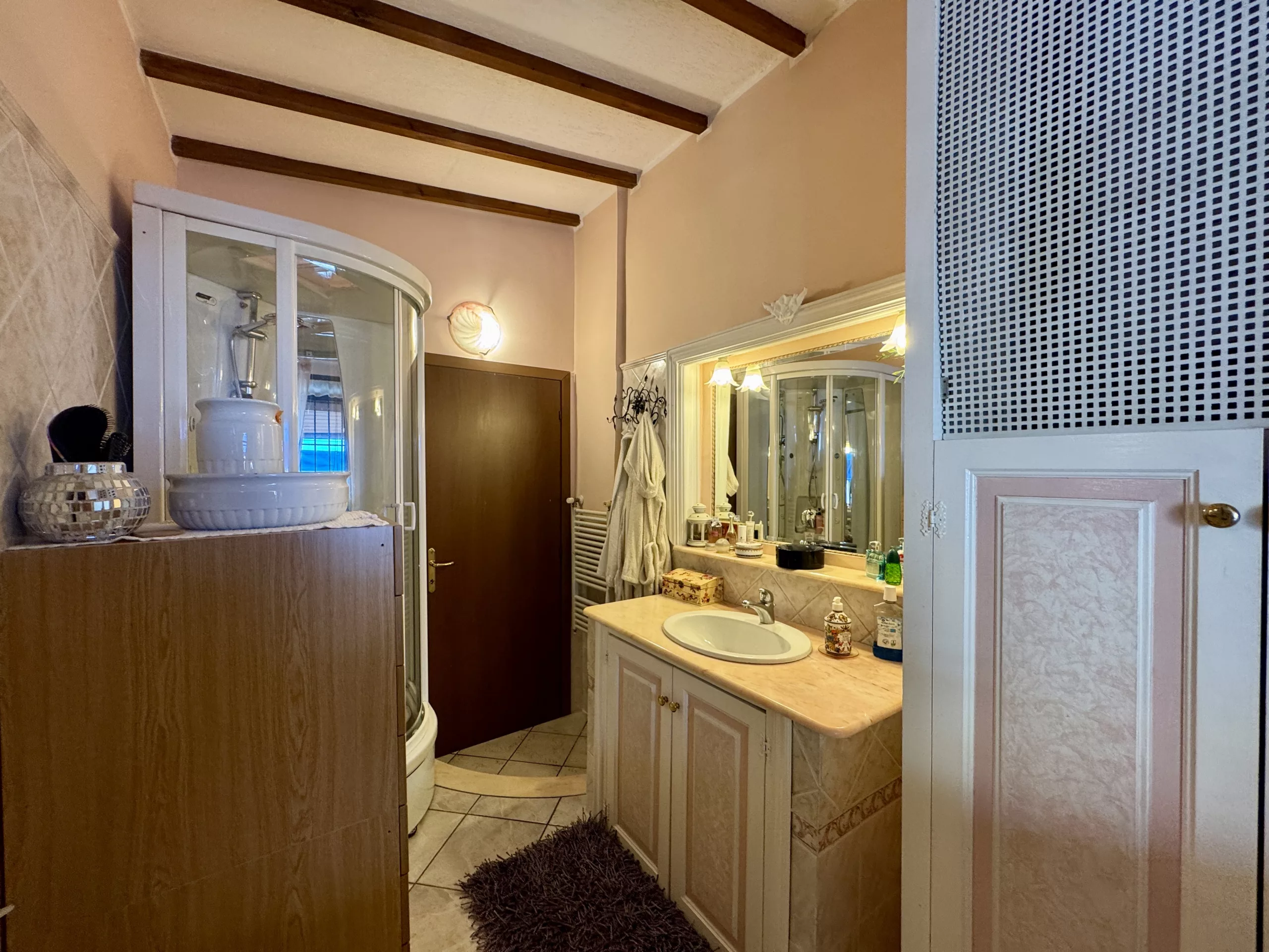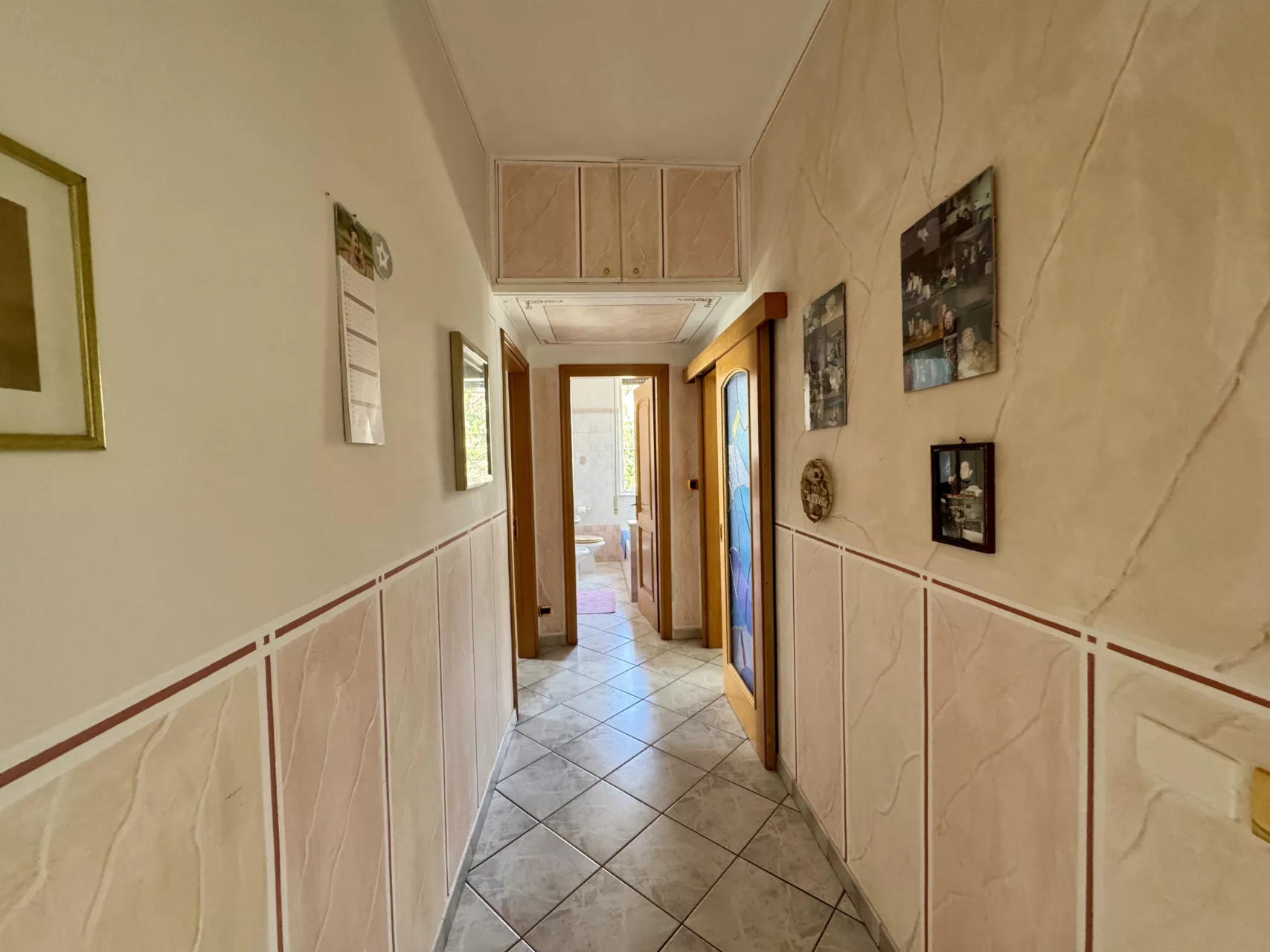 Appartamento al piano terra di circa 99 mq, composto da ingresso nel grande soggiorno con cucina a vista, camera matrimoniale in soppalco zona giorno, bagno, ripostiglio, seconda camera e terza stanza adibita a lavanderia con ulteriore bagno. Completa la proprietà un giardino privato di circa 110 mq, perfetto per momenti di relax all’aperto o per chi ha animali domestici.