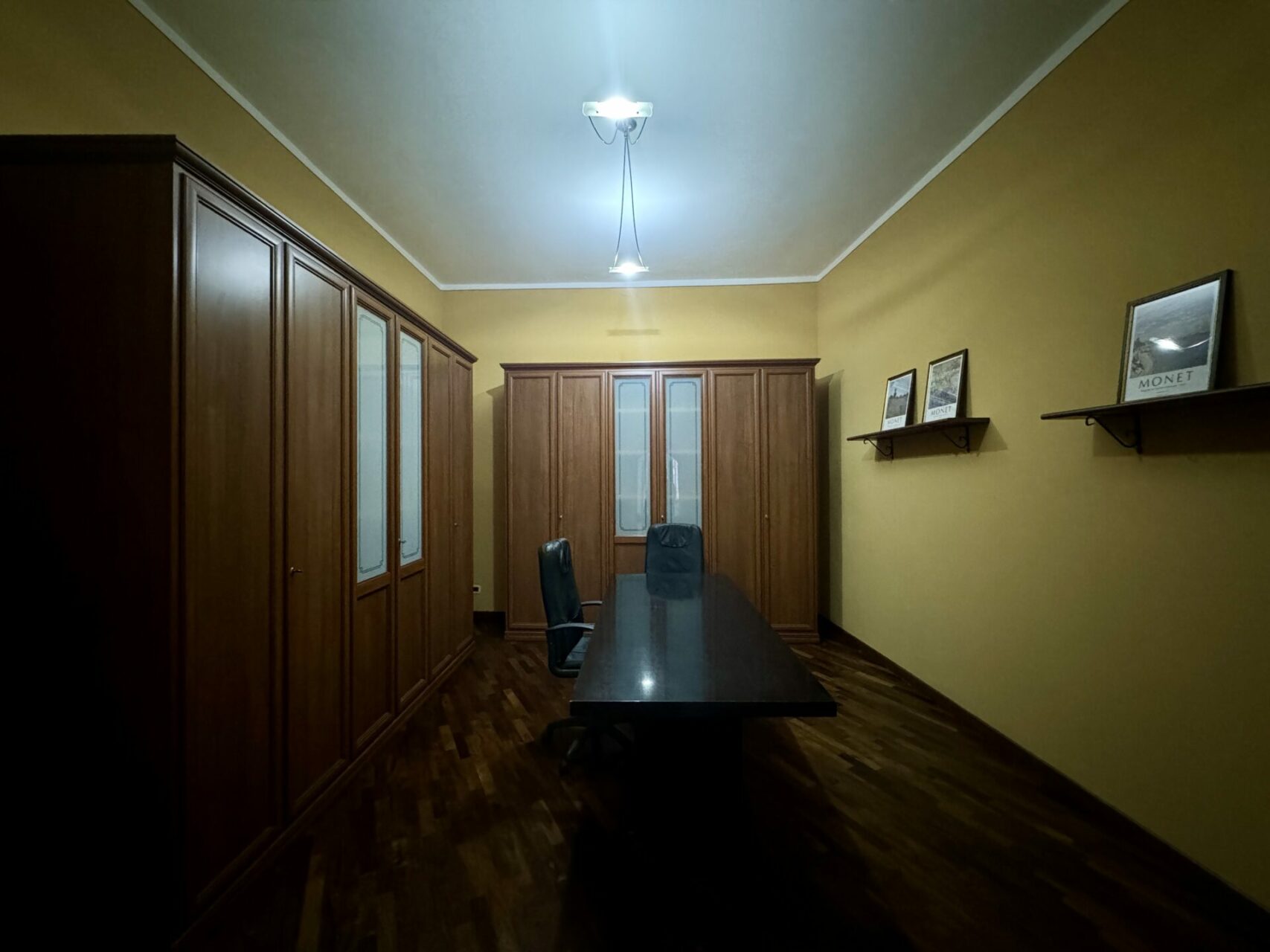 Soluzione composta da: sala d’aspetto, sala riunioni, due stanze adibite a zona lavoro e bagno di servizio.