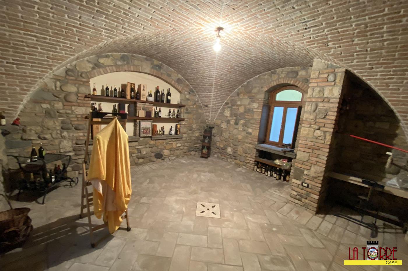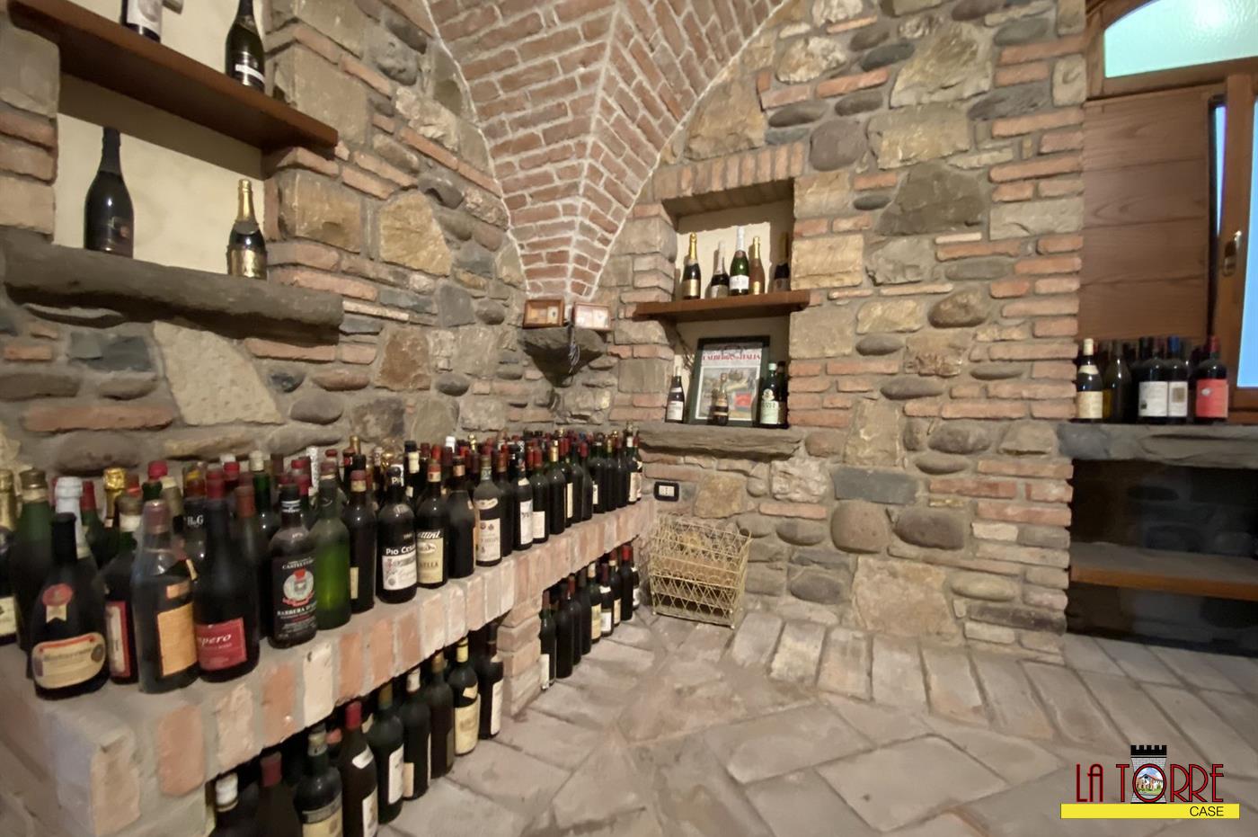 Cantina vino fatta in mattoni e volte con pareti a pietre.