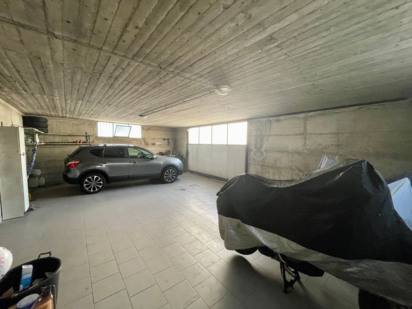 In the semi-basement, the garage offers space for three cars and a small boat. There are also two taverns, a technical room, a cellar, and a bathroom.