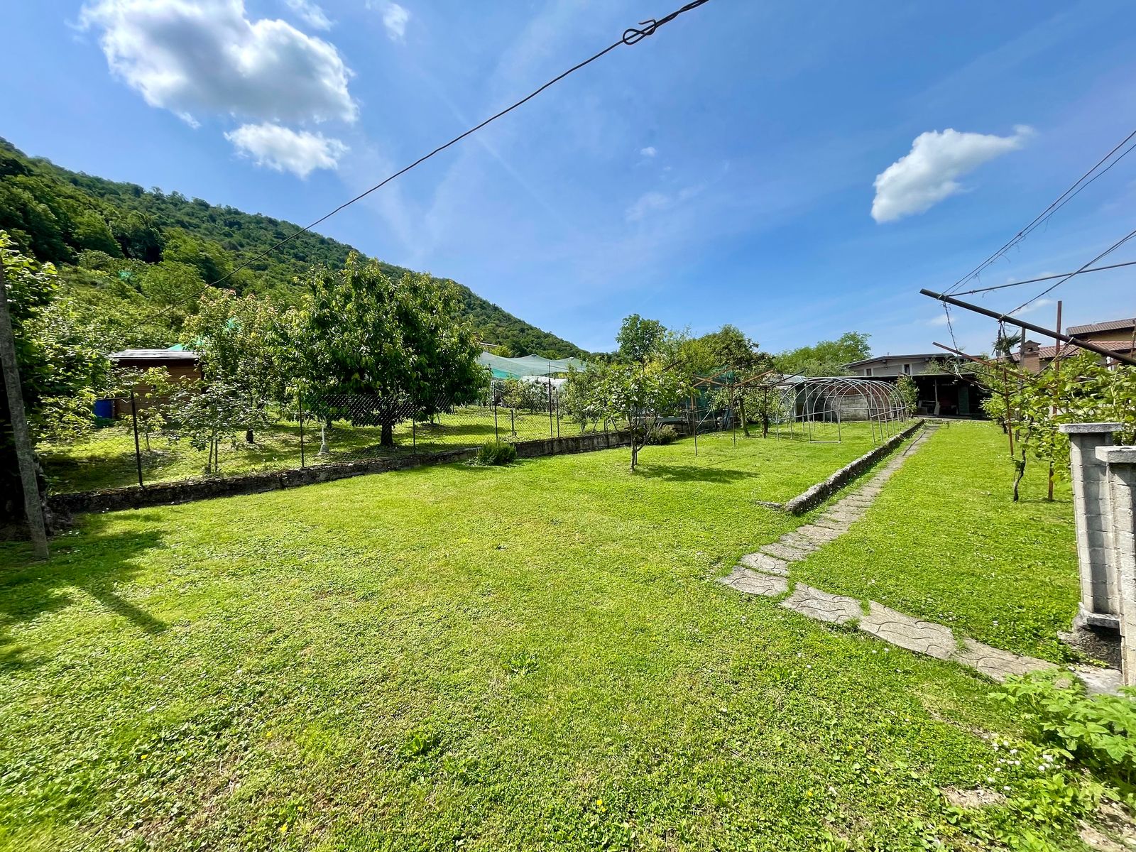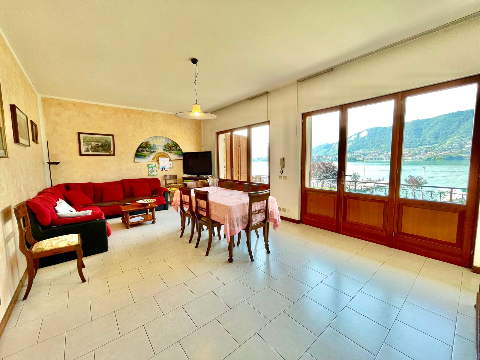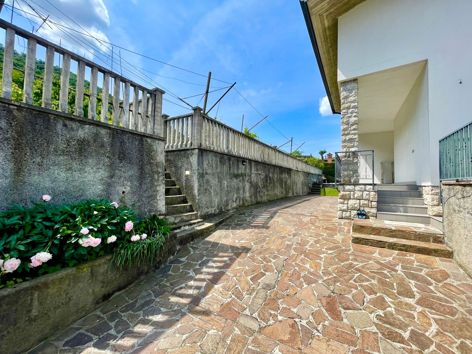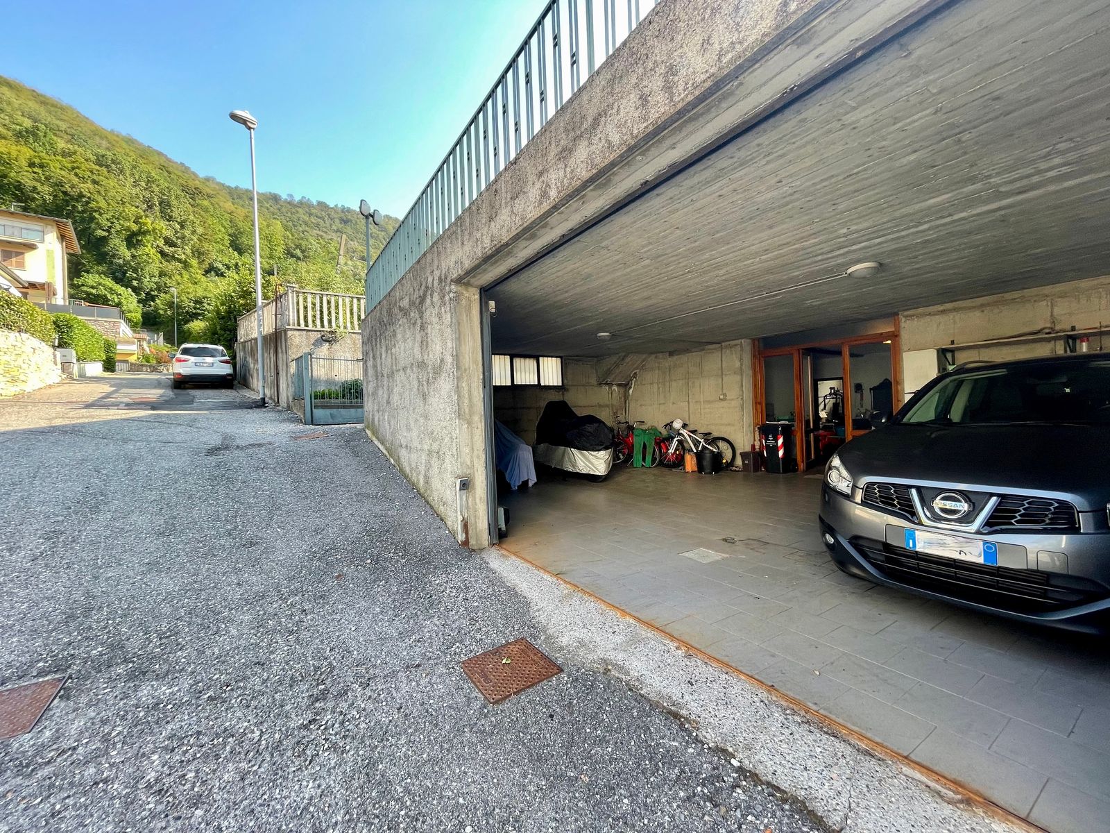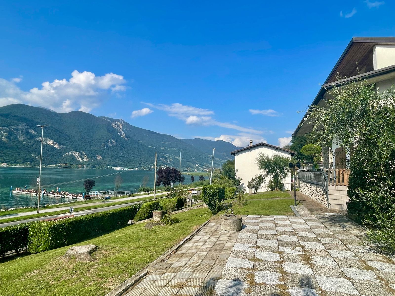 L’accesso alla casa è sia frontale dalla strada che lateralmente dall’ampio box triplo posto nel piano seminterrato e dalla corte. Al piano terra troviamo un grande giardino di proprietà di ben 1000 mq con piscina, corte retrostante con posti auto scoperti, ulteriore giardino terrazzato di proprietà esclusiva di 490 mq, ampia terrazza vista lago, soggiorno, cucina separata, due camere da letto matrimoniali ed un bagno; quanto al piano primo troviamo un soggiorno con balcone vista lago, cucina separata, tre stanze, bagno e ripostiglio