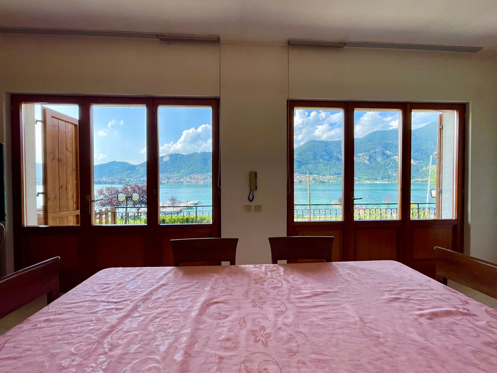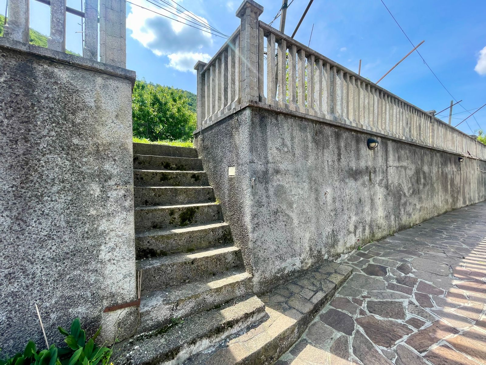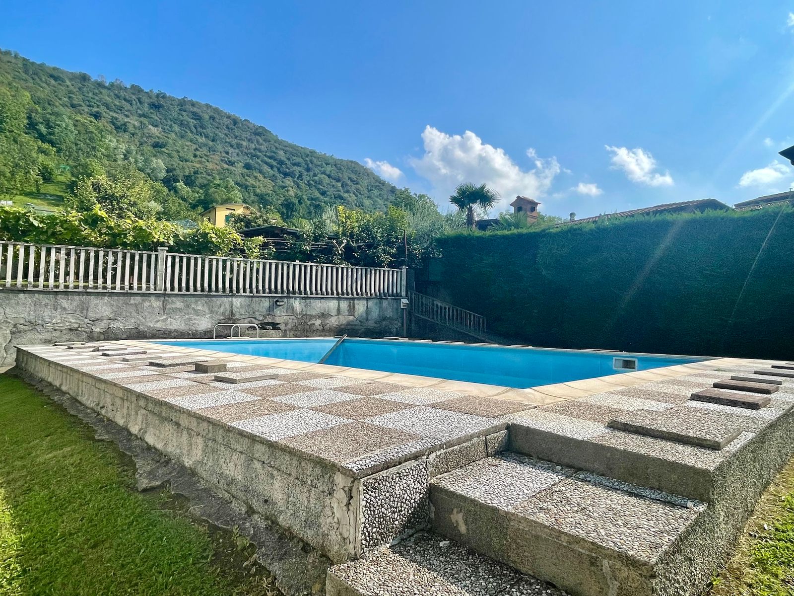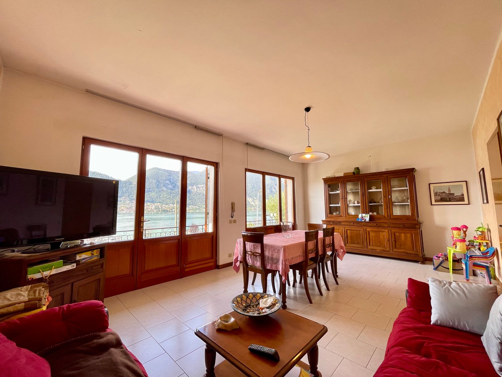 L’accesso alla casa è sia frontale dalla strada che lateralmente dall’ampio box triplo posto nel piano seminterrato e dalla corte. Al piano terra troviamo un grande giardino di proprietà di ben 1000 mq con piscina, corte retrostante con posti auto scoperti, ulteriore giardino terrazzato di proprietà esclusiva di 490 mq, ampia terrazza vista lago, soggiorno, cucina separata, due camere da letto matrimoniali ed un bagno; quanto al piano primo troviamo un soggiorno con balcone vista lago, cucina separata, tre stanze, bagno e ripostiglio